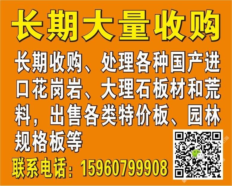 長期收購處理各種國產(chǎn)進(jìn)口花崗巖、大理石板材和荒料,出售各類特價(jià)大理石和花崗巖、園林規(guī)格板、地鋪等,聯(lián)系:15960799908